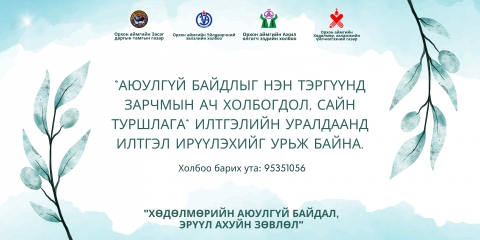 "ЭРҮҮЛ АЮУЛГҮЙ АЖЛЫН БАЙРЫГ ЭРХЭМЛЭГЧ БАЙГУУЛЛАГА" УЛСЫН УРАЛДААНД МАТЕРИАЛАА ХҮРГҮҮЛЭЭРЭЙ