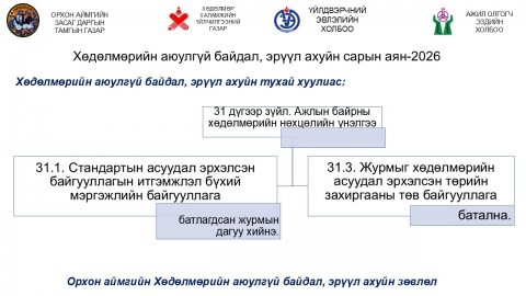 ОРХОН АЙМГИЙН ХӨДӨЛМӨРИЙН АЮУЛГҮЙ БАЙДАЛ, ЭРҮҮЛ АХУЙН САРЫН АЯН-2026 АРГА ХЭМЖЭЭНИЙ ТӨЛӨВЛӨГӨӨ