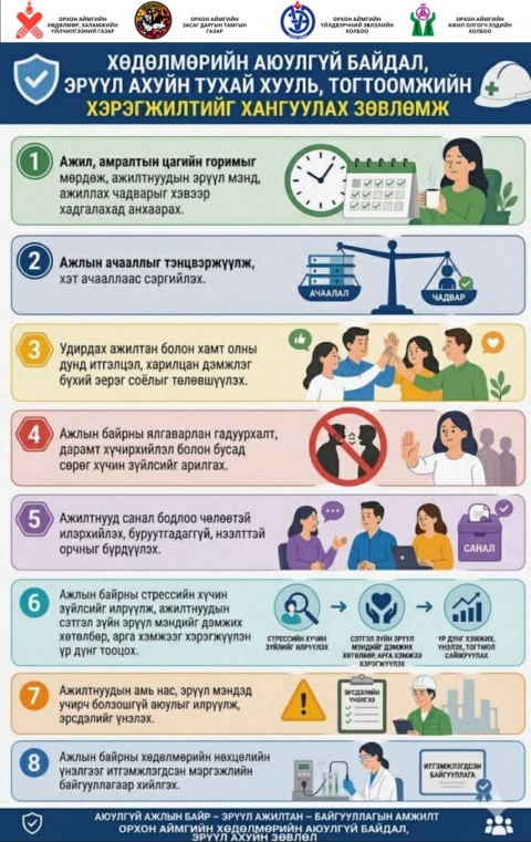 ХӨДӨЛМӨРИЙН АЮУЛГҮЙ БАЙДАЛ, ЭРҮҮЛ АХУЙН НӨХЦӨЛИЙГ САЙЖРУУЛАн АЖИЛЛАСАН ОНЫ ШИЛДЭГ БАЙГУУЛЛАГ ШАЛГАРЛАА